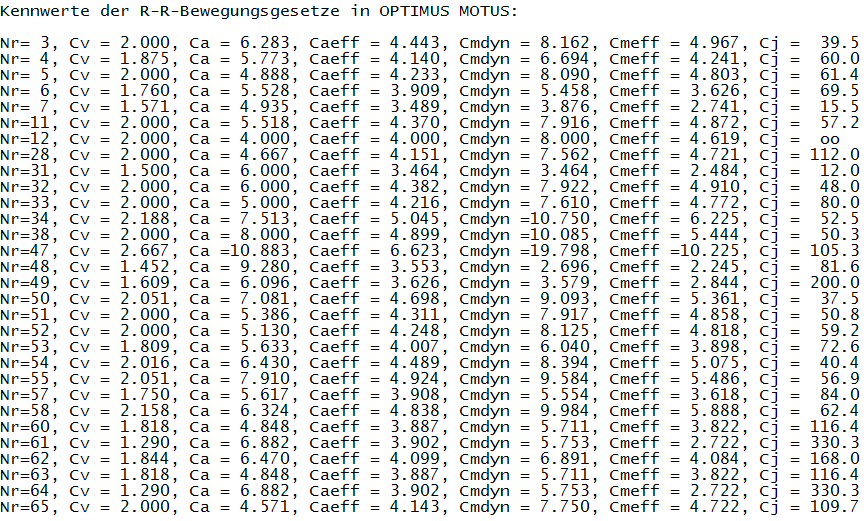 Unsere Software OPTIMUS MOTUS bietet sehr viele Bewegungsgesetze an, mehr und vielfältiger, als wir sonst irgendwo auf einem Haufen gesehen haben. Im übernächsten Abschnitt sind diese Bewegungsgesetze aufgelistet.