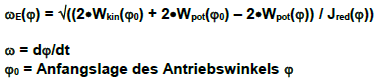 Allgemein läßt sich das reduzierte Massenträgheitsmoment Jred(phi) am Antrieb eines Mechanismus, das alle trägen Massen in ihrer Wirkung ersetzen soll, über folgende Beziehungen ermitteln:
